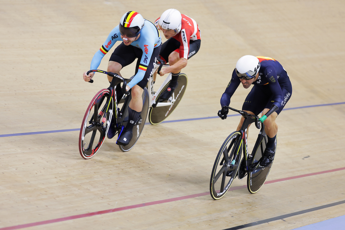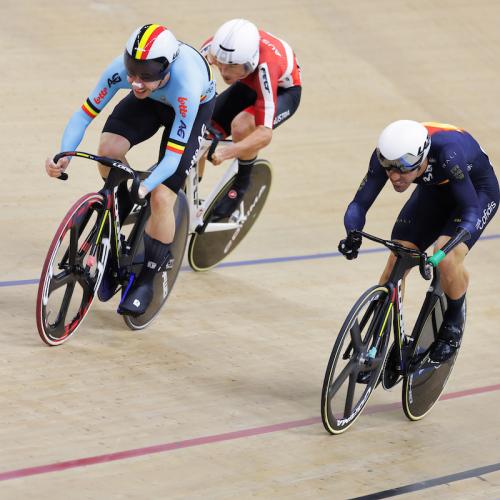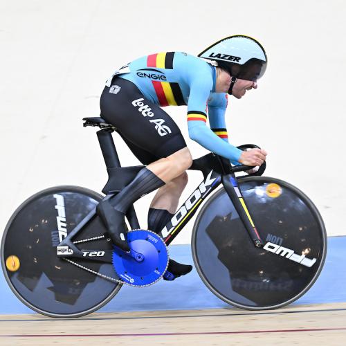 Eerder op de dag knalde Lennert Vanlathem uit Oostduinkerke al naar brons in de afvalkoers (klasse MC1). De Belg bleef slim bovenaan de baan en schakelde zo enkele concurrenten uit. De Rus Ermakov (zilver) en de Spanjaard Ten Argiles (goud) waren sterker. Het is de tweede bronzen plak voor Vanlathem, na de scratch eerder deze week.