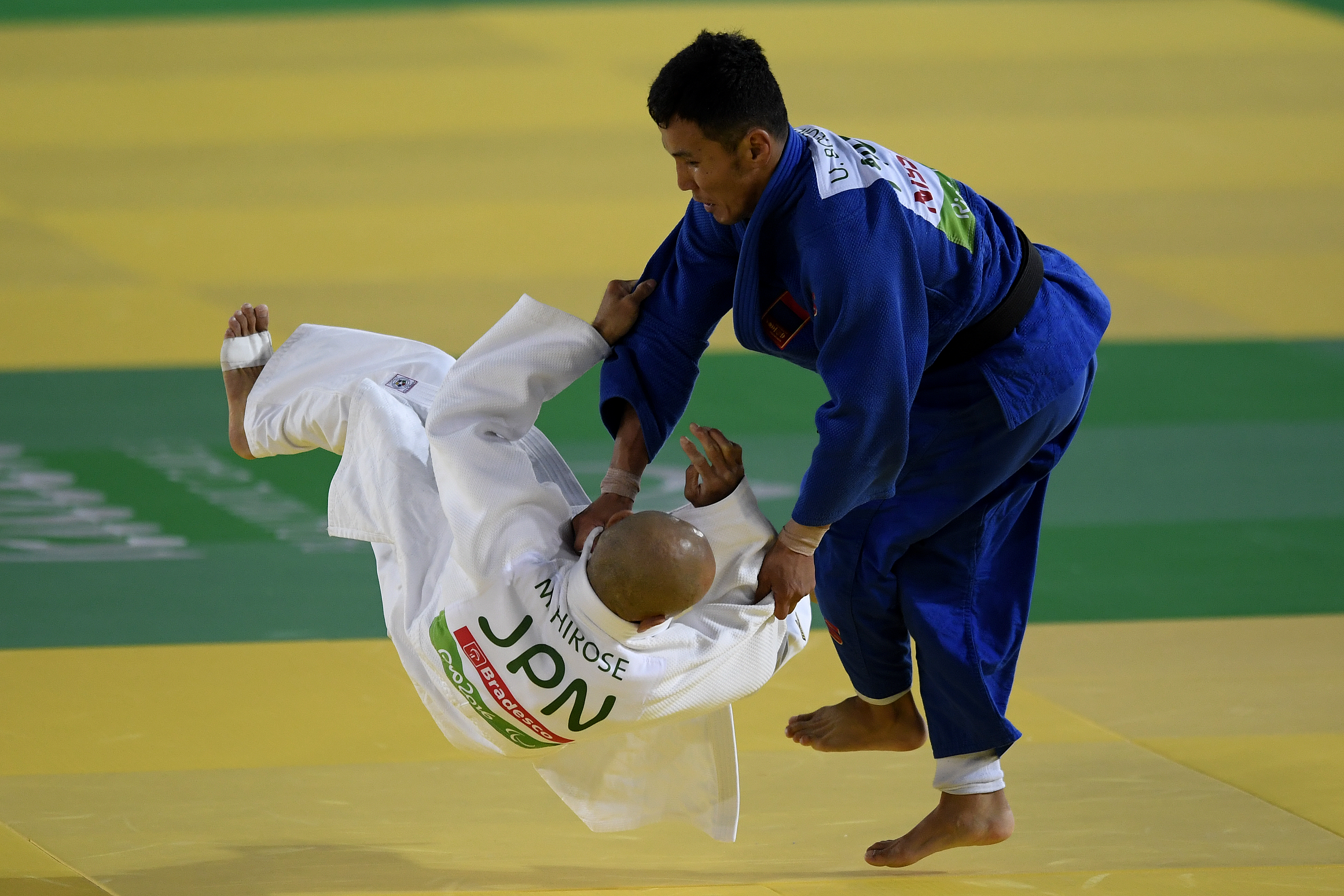 En judo, les athlètes sont d’abord répartis en plusieurs classes selon leur niveau de déficience visuelle: J1 (aveugle) et J2 (malvoyant).