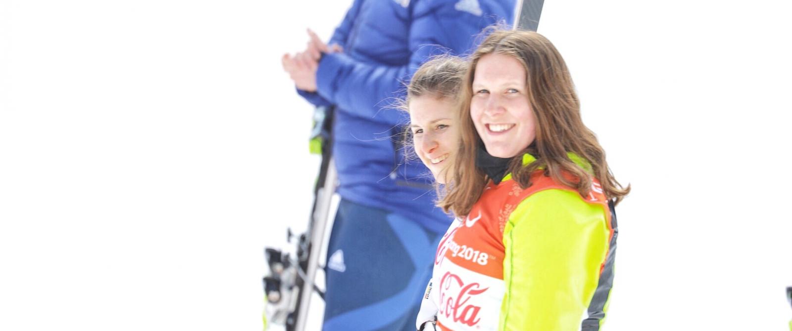 De ‘Soeurs de glisse’ veroverden de bronzen plak, de Slovaakse nummer 1 van de wereld Henrieta Farkasova en de Britse Millie Knight, regerend wereldkampioene in de afdaling.