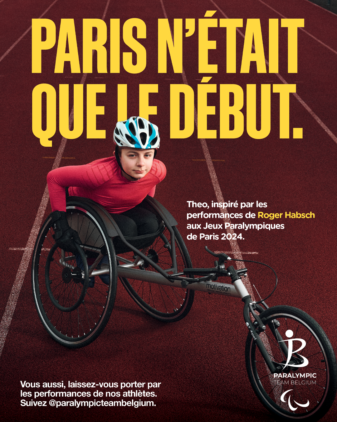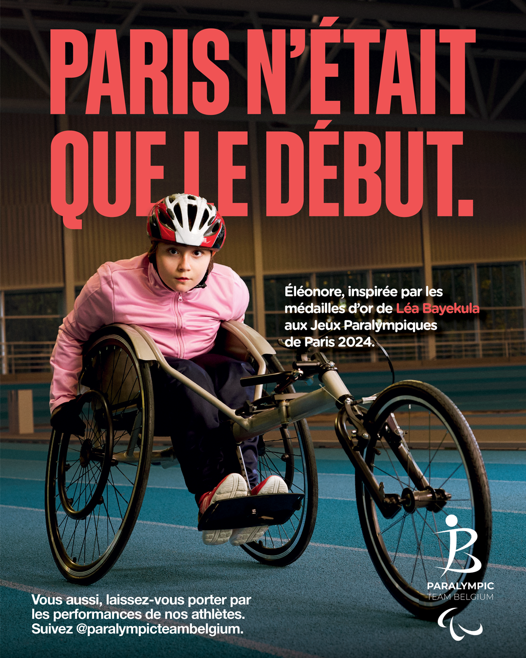 Inspiratie is een kernwoord in de missie van het Belgian Paralympic Committee en de atleten van Paralympic Team Belgium. Daarom hebben we de campagne ‘Parijs was nog maar de start’ uitgewerkt, waarin vier kinderen centraal staan die geïnspireerd zijn door verschillende atleten van Paralympic Team Belgium tijdens de laatste Paralympische Spelen. Net als hun rolmodellen stralen ze zelfvertrouwen, vastberadenheid en doorzettingsvermogen uit.