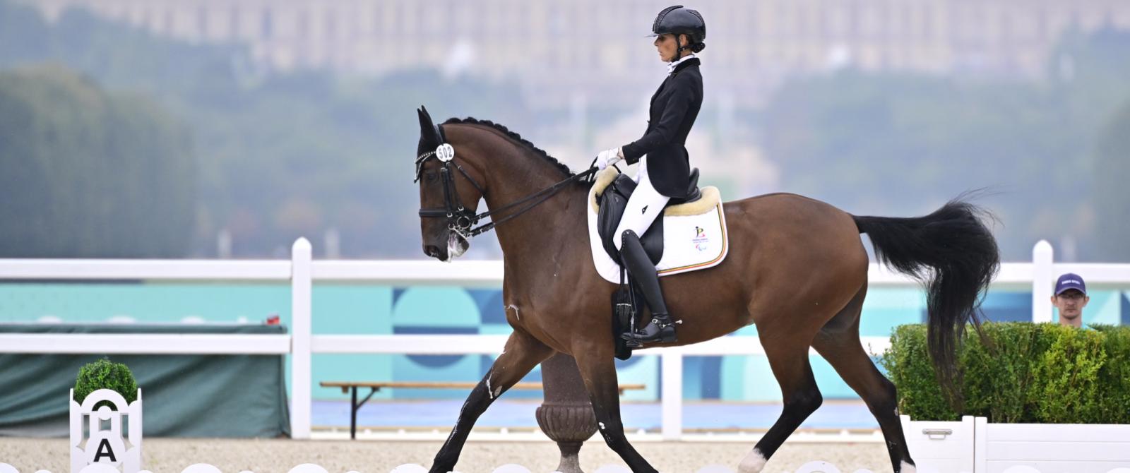 Michèle George a remporté un nouveau titre à l'occasion du concours individuel freestyle de para dressage en Grade V, aux Jeux Paralympiques de Paris 2024. Dans le cadre du Château de Versailles, la cavalière de 50 ans a surclassé la concurrence sur Best of 8 avec une note de 81.470%, pour s'arroger son septième sacre paralympique. Kevin Van Ham (Eros van ons Heem) a terminé 5e avec un score de 73.010%. L'Allemande Regine Mispelkamp (Highlander's Delight) empoche l'argent, et la Britannique Sophie Wells (LJT Egebjerggards Samoa) le bronze. La note technique de 77.700% et la note artistique de 85.240% rapportent une deuxième médaille d'or à Paris à Michele George et Best of 8 après la victoire sur le Grand Prix Test mercredi. Kevin Van Ham y avait terminé 6e.