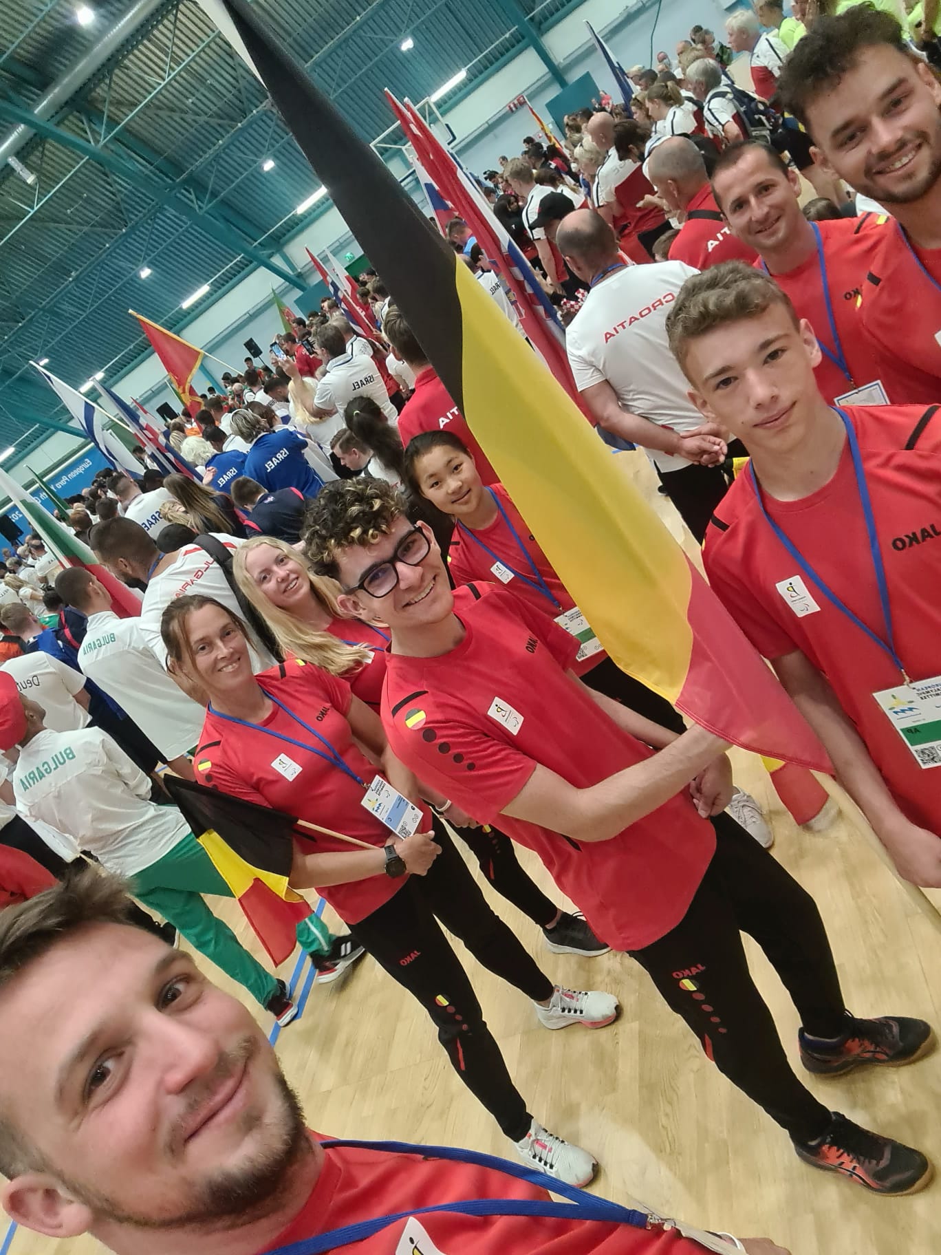 Ce jeudi soir, toute la délégation présente à Pajulahti participait à la cérémonie d’ouverture des Jeux. Portant fièrement les couleurs belges, athlètes et staff ont défilé devant le public et les dignitaires présents sur le site. Après tirage au sort c’est le pongiste Hamza Taleb qui avait l’honneur de porter le drapeau et mener la délégation belge.