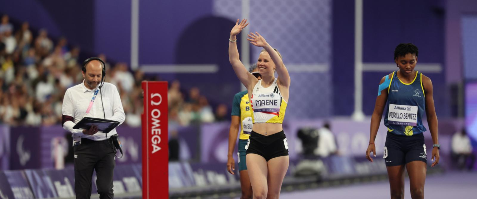 Le Stade de France a servi de théâtre aux débuts paralympiques de la jeune Kiara Maene (18 ans) de Heusden-Zolder. La Limbourgeoise a pris le départ du 400 mètres sprint (classe T20). Avec un temps de 1:06.25, elle a terminé 13e et dernière des séries qualificatives. Elle est la première Belge avec un handicap mental à concourir en athlétisme aux Jeux depuis la professionnalisation du sport paralympique de haut niveau.