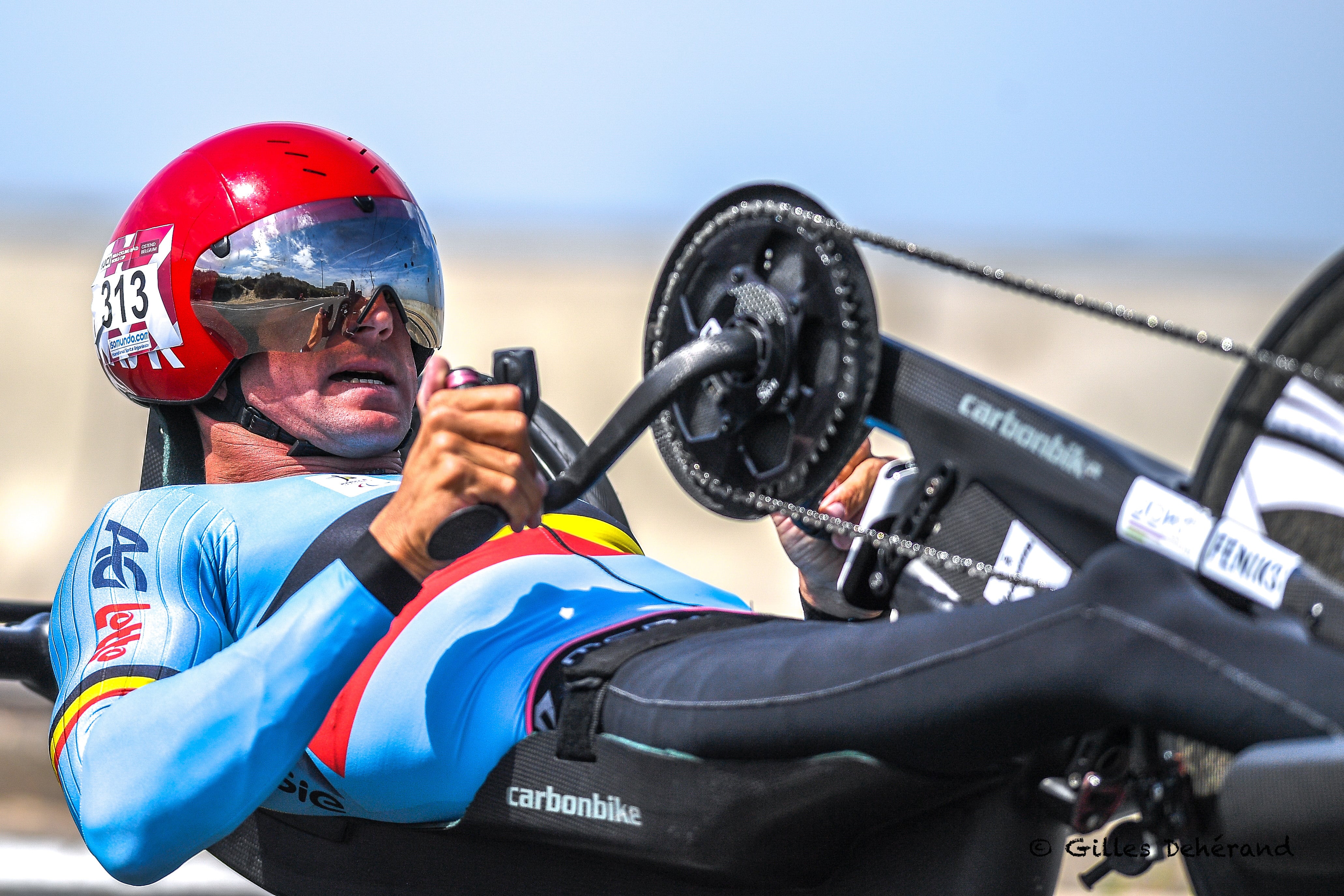 Ewoud Vromant, en action ce vendredi après-midi, s’est lui aussi adjugé la médaille d’argent (MC2). Après le premier tour, le champion du monde en titre comptait une dizaine de secondes sur le français Alexandre Leauté. Il réussissait à en reprendre plusieurs dans le second tour, mais passe à côté de l’or pour 2,5 secondes sur la ligne d’arrivée. Il bouclait les 21 kilomètres en 26 :56,324, soit une moyenne de 46,77 km/h.