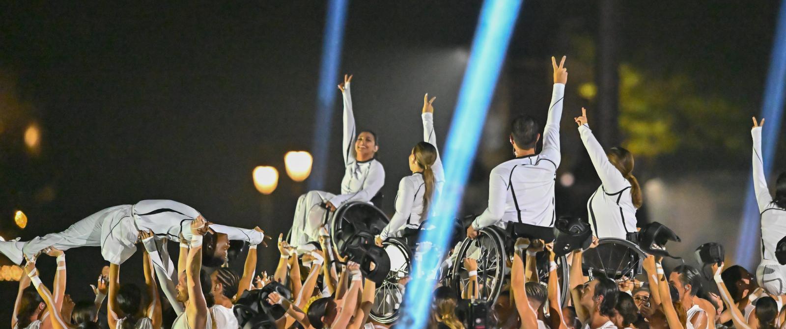 De openingsceremonie startte woensdagavond met een parade van de atleten over de Champs-Élysées tot op de Place de la Concorde. 150 dansers, waarvan een twintigtal met een beperking waaronder de Hasseltse Sofie Cox, gaven daar tijdens een show het beste van zichzelf. De choreografie was van de Zweed Alexander Ekman. De show stond in het teken van "het lichaam en de manier waarop de maatschappij naar personen met een beperking kijkt". De geest van inclusiviteit kwam daarbij centraal te staan.