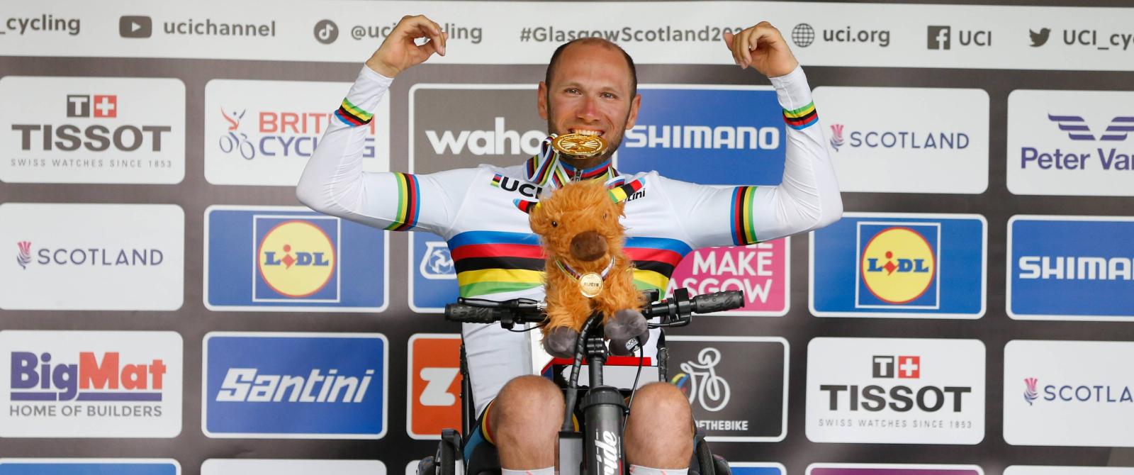 Maxime Hordies (27) mocht afgelopen zomer op de UCI wereldkampioenschappen wielrennen in Glasgow opnieuw de regenboogtrui aantrekken. Nadat hij zilver veroverde in de tijdrit, pakte hij goud in de wegrit klasse H1. Het is de derde wereldtitel voor Ligue Handisport Francophone-handbiker, die zich vorig jaar ook al tot eindwinnaar kroonde van het UCI Para-cycling World Cup-circuit op de weg. In Tokio nam Maxime Hordies voor het eerst deel aan de Paralympische Spelen. Hij won er brons in de tijdrit (klasse H1). Dat hij komende zomer ambitieus aan de start zal staan in Parijs, is nog zacht uitgedrukt.