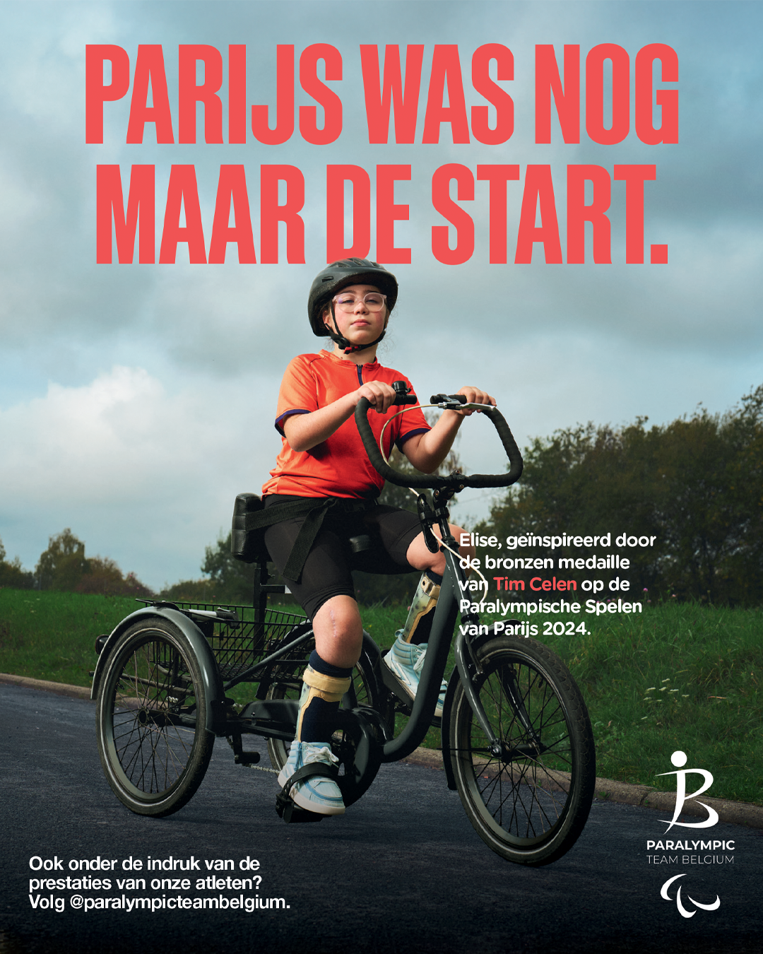 Inspiratie is een kernwoord in de missie van het Belgian Paralympic Committee en de atleten van Paralympic Team Belgium. Daarom hebben we de campagne ‘Parijs was nog maar de start’ uitgewerkt, waarin vier kinderen centraal staan die geïnspireerd zijn door verschillende atleten van Paralympic Team Belgium tijdens de laatste Paralympische Spelen. Net als hun rolmodellen stralen ze zelfvertrouwen, vastberadenheid en doorzettingsvermogen uit.