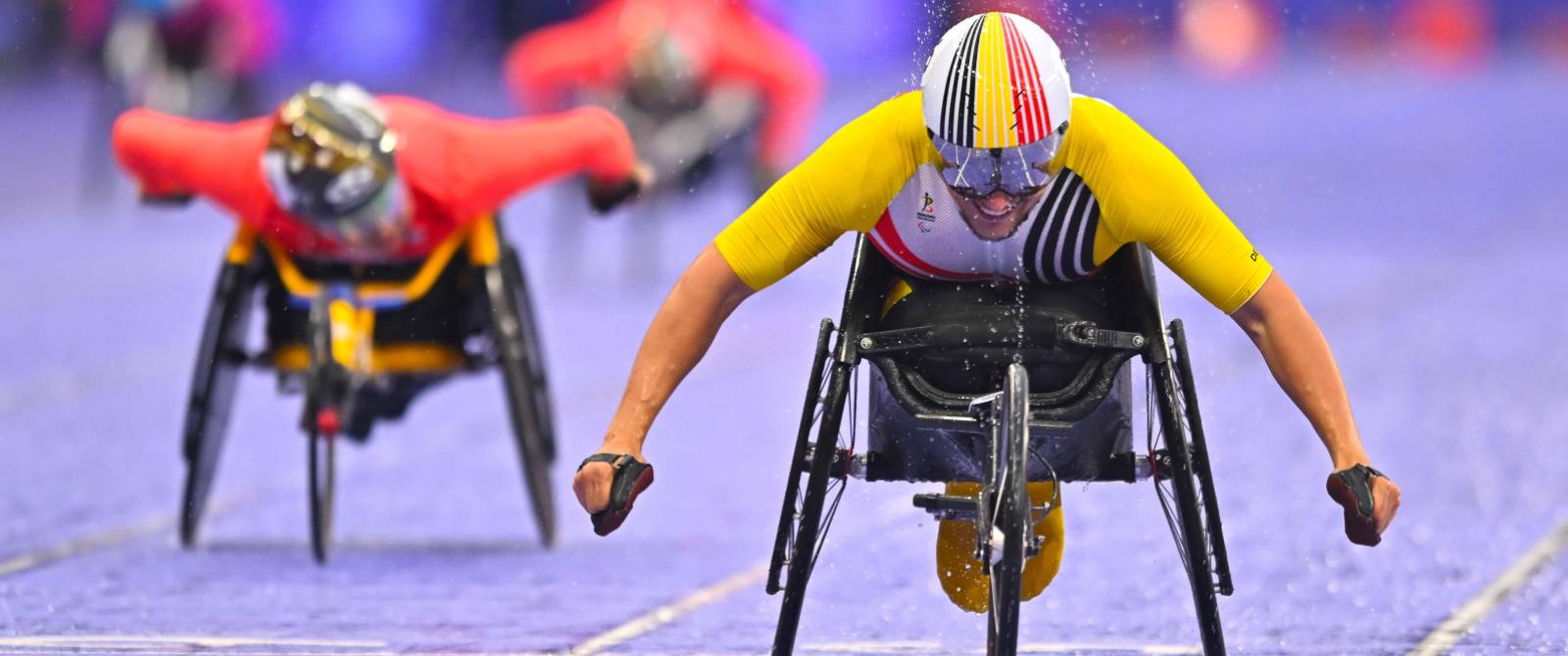 De 23-jarige Luikenaar kwam in zijn T52-klasse als topfavoriet aan de start in het Stade de France en maakte die rol met verve waar. Hij finishte in 55.10 als eerste voor de Japanners Tomoki Sato, tweede in 56.26, en Tomoya Ito, derde in 1:01.08.